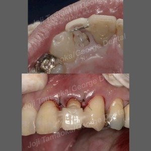 挺出後、歯肉の位置を整えるために歯肉弁を移動。